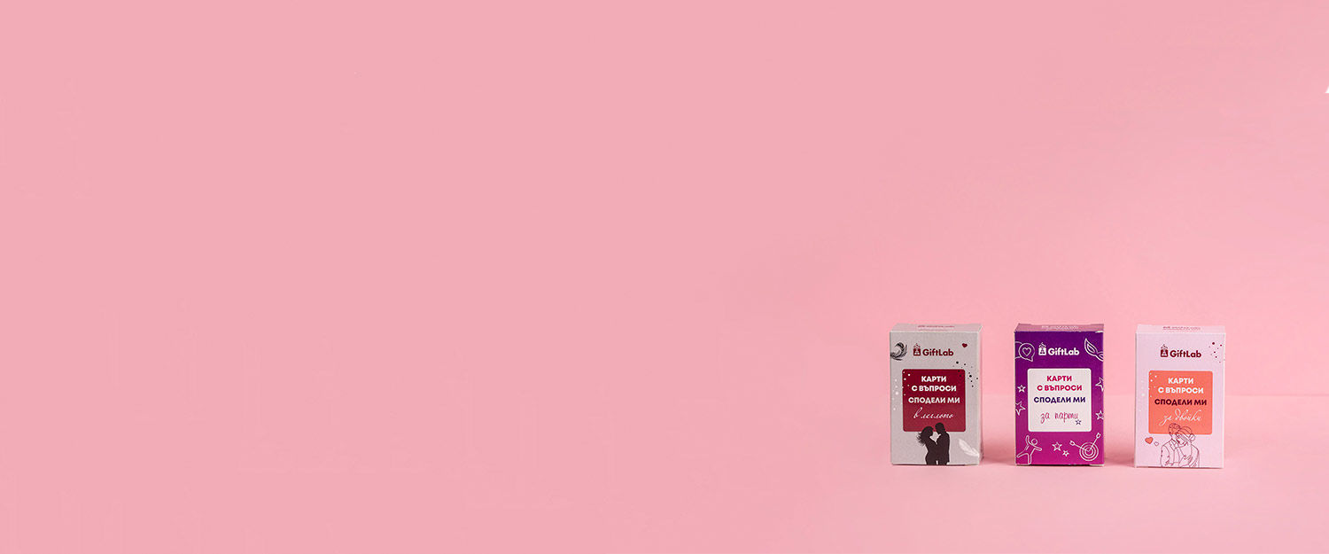 Картите с въпроси на GiftLab създадохме за всички, които като нас търсят още сладост и пиперливост, различност и цвят в живота. Ела и си вземи! Лесно е, само на количката щракни.